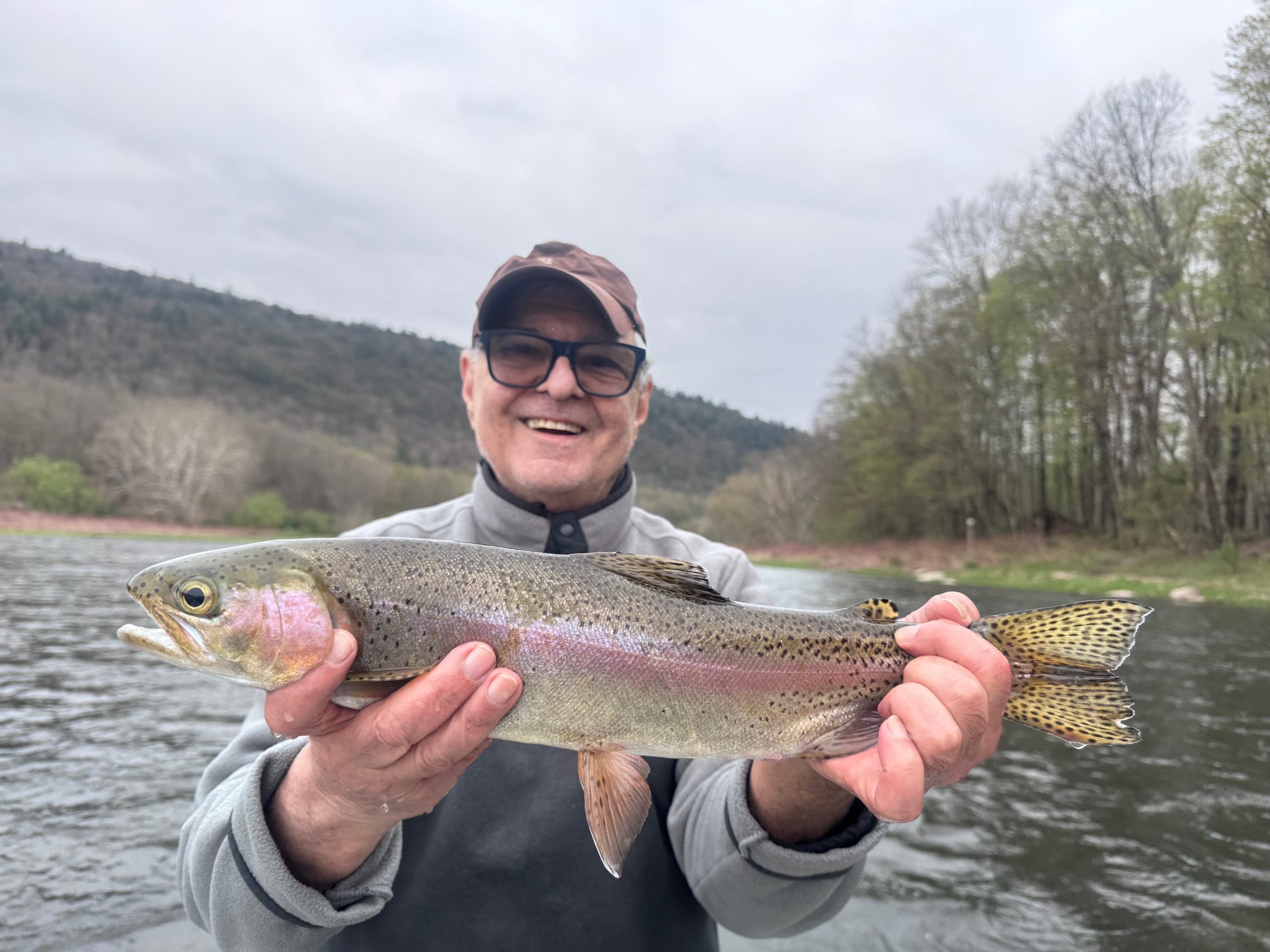 We had wind, rain, and snow showers yesterday. Along with the best bugs so far this season. There are Hendricksons and apple caddis on some sections plus blue quills, olives, and little black caddis. The wind has been tough but the fish are eating in protected areas and in between gusts. The flows are up a bit from the rian but are dropping back this morning. The release from Cannonsville is 600 cfs. Today is going to be similar to yesterday but a bit colder. The colder nights dropped the water temps so it will take a little longer to warm up today. We’ll start to warm up again tomorrow.